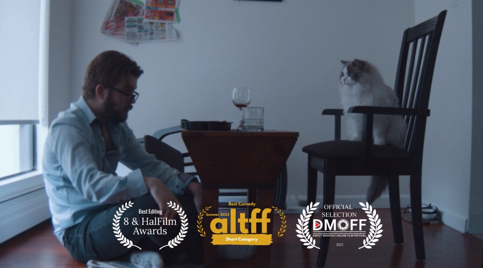 An ex-Journalist confronts his inner demons within the confines of his home, accompanied by his two cats.